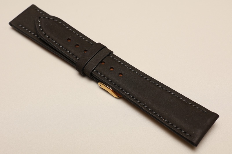Wierzch paska wykonany z naturalnej skóry cielęcej o matowym wykończeniu i naturalnej strukturze nubuku. Futrówka z delikatnej w dotyku, najwyższej jakości skóry używanej przez uznanych producentów m.in. Hermes. Pogrubiony od 4mm do 3,3mm, miękki. Pasek przeszyty nicią pod kolor. Dwie szlufki, metalowa klamerka.Idealny do klasycznych zegarków vintage.