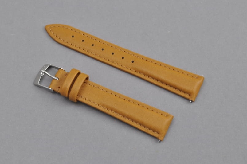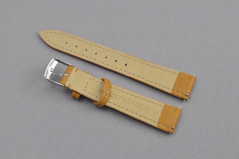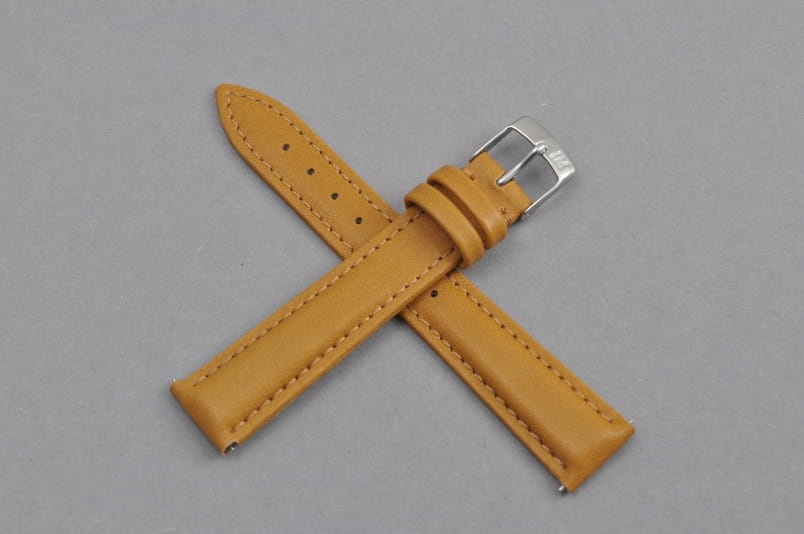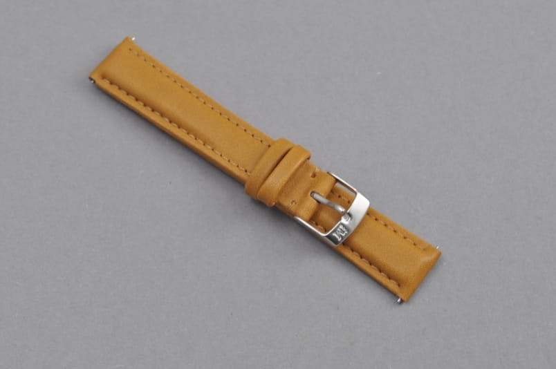 Pasek wykonany w 100% ze skóry syntetycznej, gładki, przeszyty nicią w kolorze paska. Lekko pogrubiany. Podwójna szlufka, stalowa klamerka. W komplecie szybkie teleskopy do łatwej zmiany.