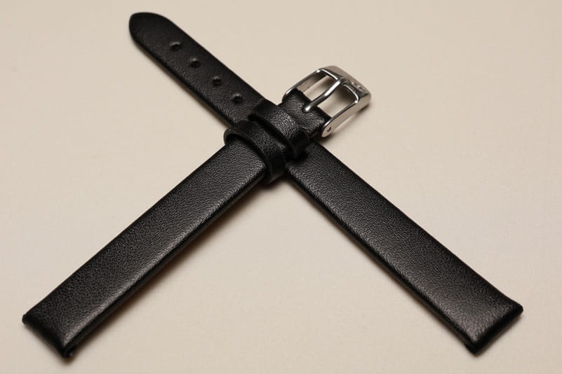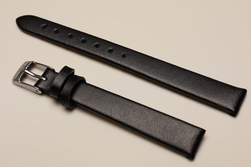 Pasek wykonany ze skóry naturalnej, gładki i klejony, bez przeszyć. Podwójna szlufka, stalowa klamerka. W komplecie szybkie teleskopy do łatwej zmiany paska.