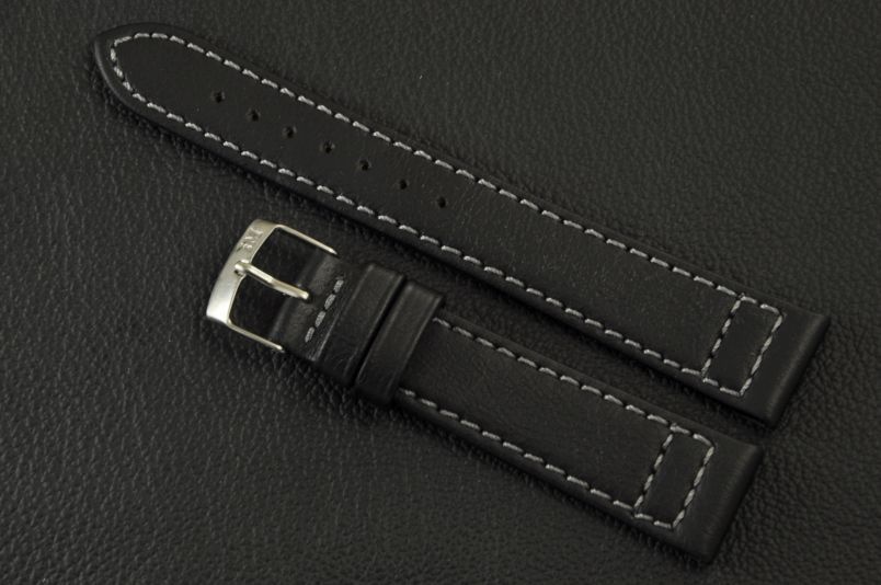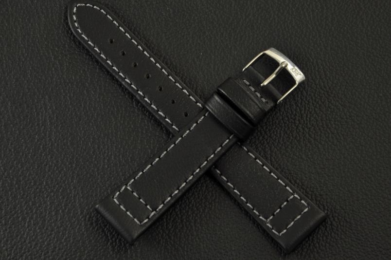 Pasek wykonany w 100% ze skóry syntetycznej. Gładki, półmatowy, przeszyty ciemną nicią. Podwójna szlufka, stalowa klamerka.