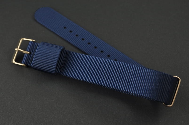 Pasek do zegarka typu Nato. Wykonany z nylonowego materiału. Wodoodporny. Pierwsza szlufka materiałowa, druga metalowa. Okucia w kolorze różowego złota. Idealny zamiennik do zegarka Daniel Wellington, model Bayswater.
