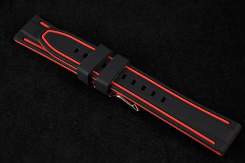 Pasek Olympics, Silikonowy, Czarno-czerwony, 24mm