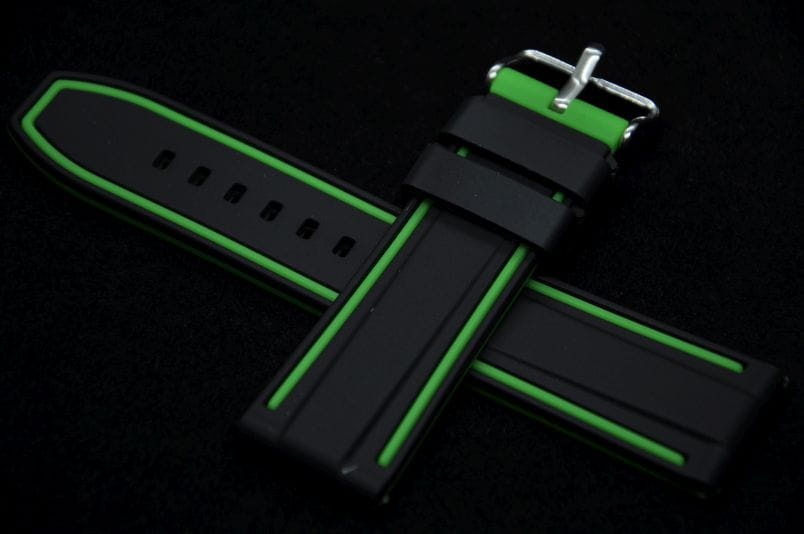 Pasek Olympics, Silikonowy, Czarno-zielony, 24mm