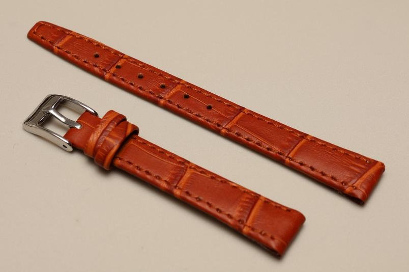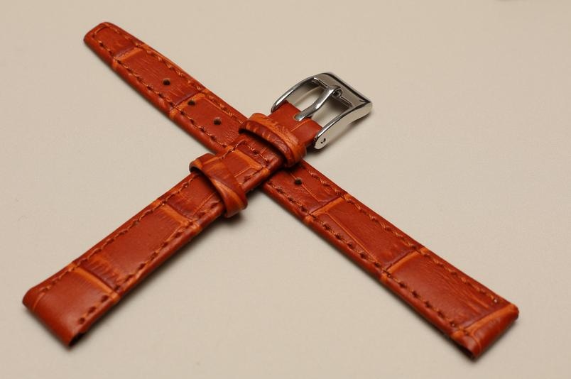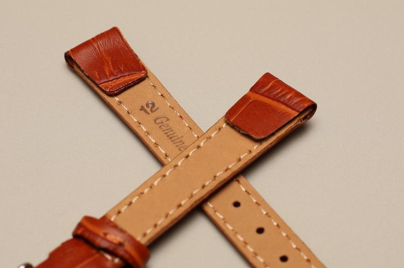 Grubość paska przy mocowaniu 4,5mm.Wykonany ze skóry cielęcej, ze wzorem skóry aligatora. Przeszyty nicą w kolorze paska. Podwójna szlufka, stalowa klamerka. Do wiekowych oraz złotych zegarków.