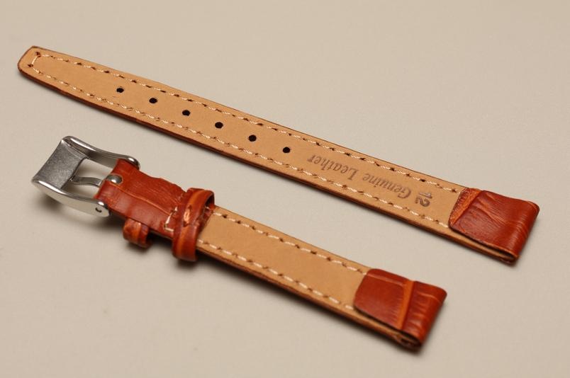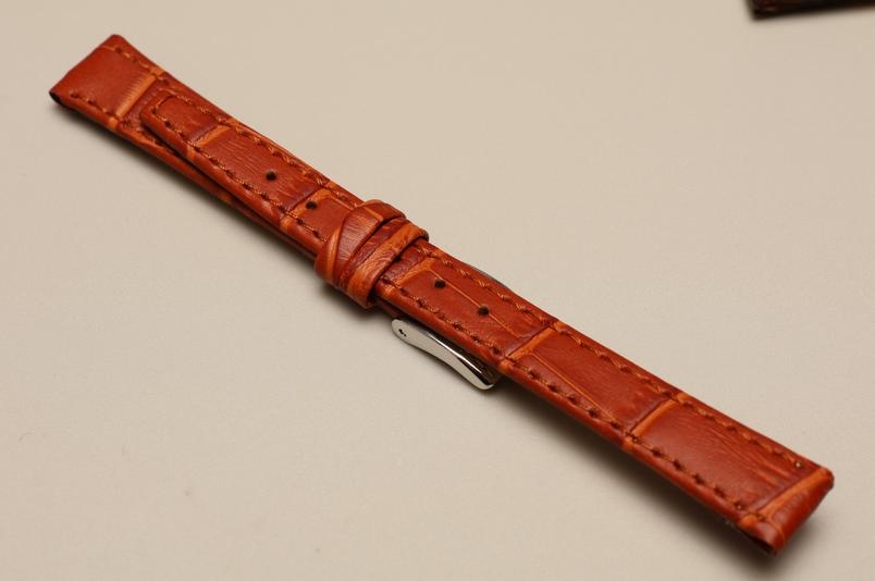 Grubość paska przy mocowaniu 4,5mm.Wykonany ze skóry cielęcej, ze wzorem skóry aligatora. Przeszyty nicą w kolorze paska. Podwójna szlufka, stalowa klamerka. Do wiekowych oraz złotych zegarków.