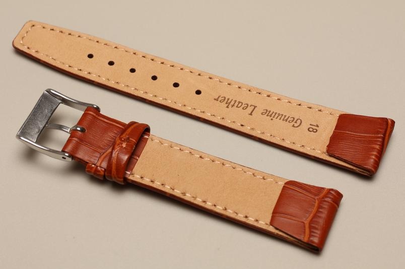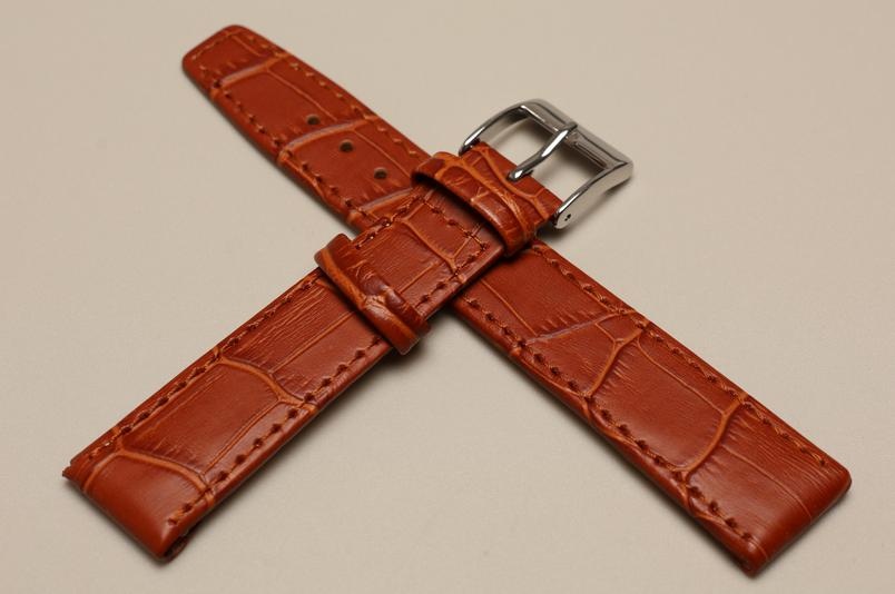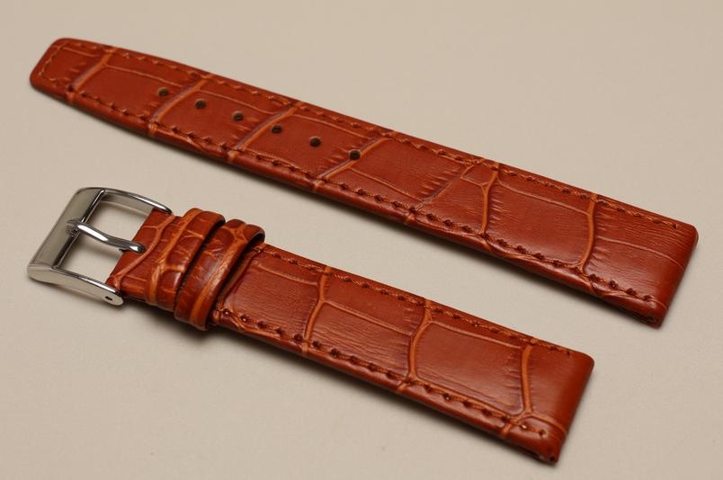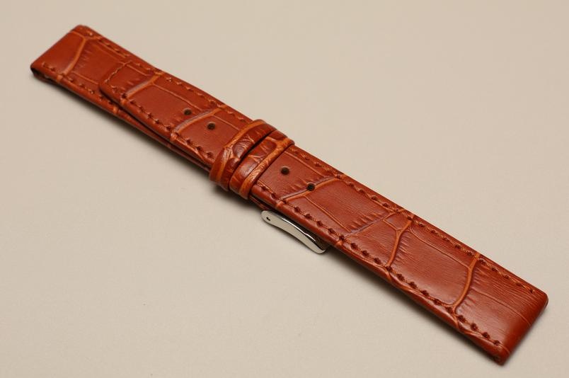 Grubość paska przy mocowaniu 4,5mm.Wykonany ze skóry cielęcej, ze wzorem skóry aligatora. Przeszyty nicą w kolorze paska. Podwójna szlufka, stalowa klamerka. Do wiekowych oraz złotych zegarków.