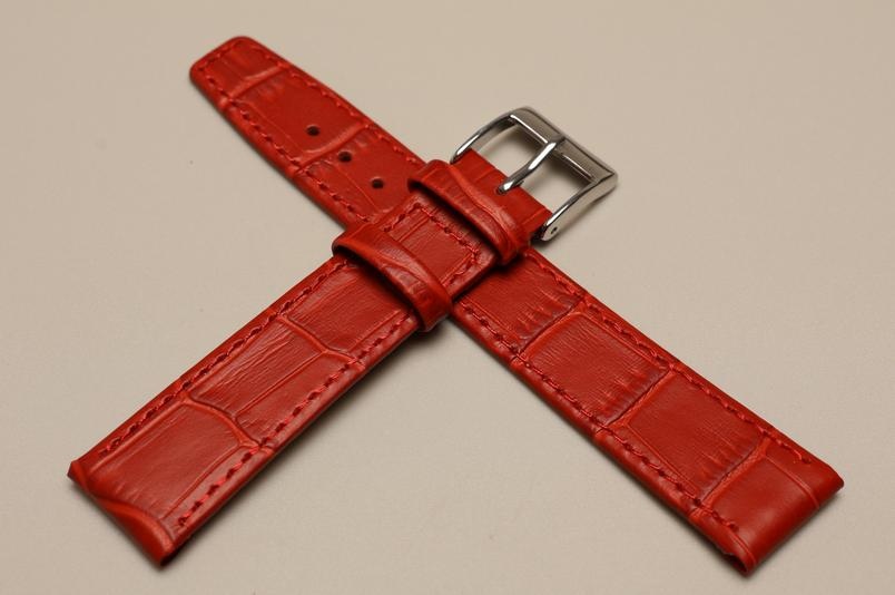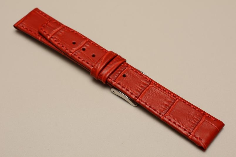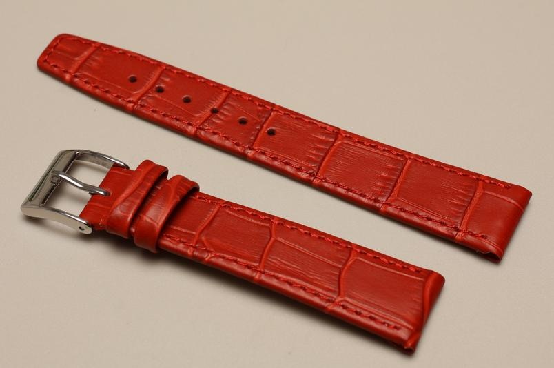 Grubość paska przy mocowaniu 4,5mm.Wykonany ze skóry cielęcej, ze wzorem skóry aligatora. Przeszyty nicą w kolorze paska. Podwójna szlufka, stalowa klamerka. Do wiekowych oraz złotych zegarków.
