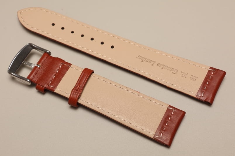 Pasek do zegarków z mocowaniem 22mm. Wykonany z olejowanej skóry naturalnej, gładki, półmatowy. Przeszywany nicią pod kolor, spód ze skóry licowej.Lekko pogrubiony (od 5,2mm przy zegarku do 4,2mm) dość miękki pasek, idealny zamiennik do markowych zegarków, zwłaszcza o sportowym charakterze. Podwójna szlufka, stalowa klamerka. Dłuższa wersja XL.