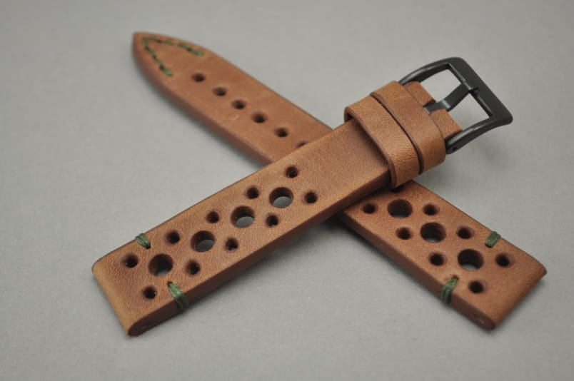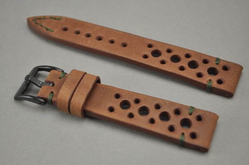 Pasek Skórzany Vintage, Brązowy , Tropic, Zielona nić, 20mm