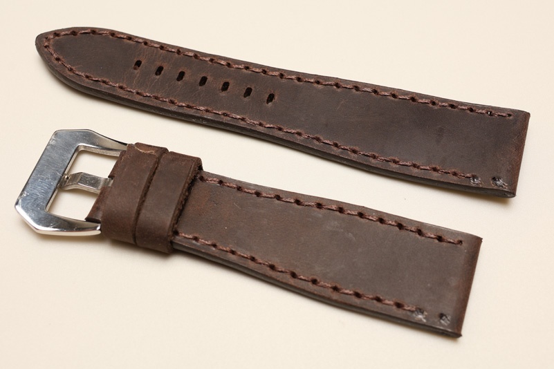 Dwie ruchome szlufki, masywna stalowa klamerka w stylu Panerai.
