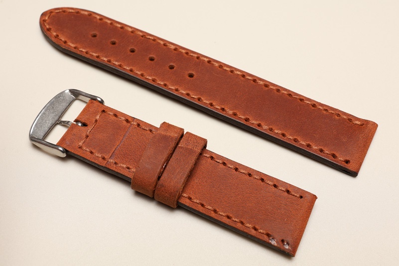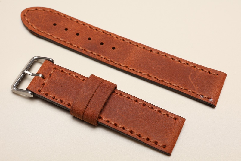 Pasek z jednego kawałka skóry, klejony, gładki. Równoległy fason w stylu vintage, z kolorowymi przeszyciami: na całej długości paska oraz przy klamerce.