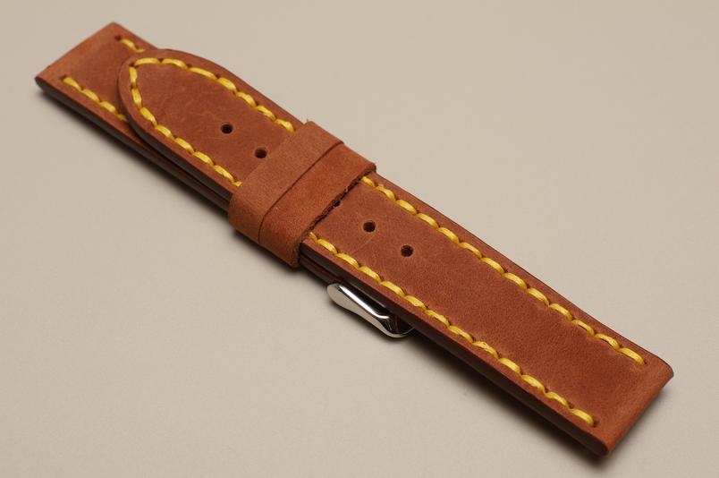 Pasek z jednego kawałka skóry, klejony, gładki. Równoległy fason w stylu vintage, z kolorowymi przeszyciami: na całej długości paska oraz przy klamerce.