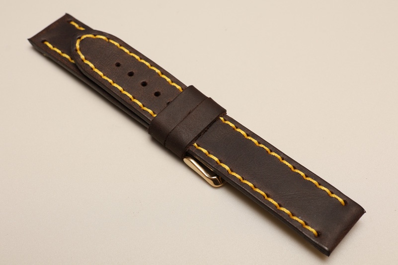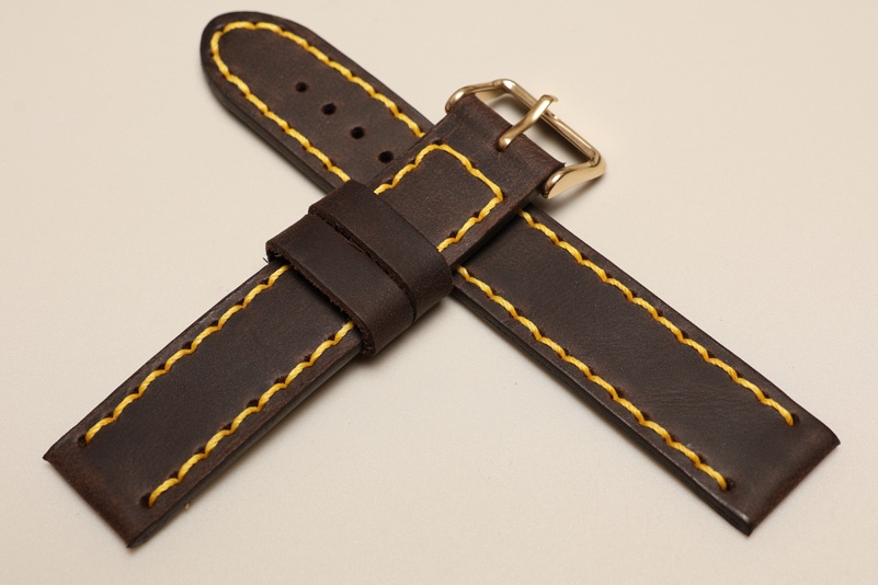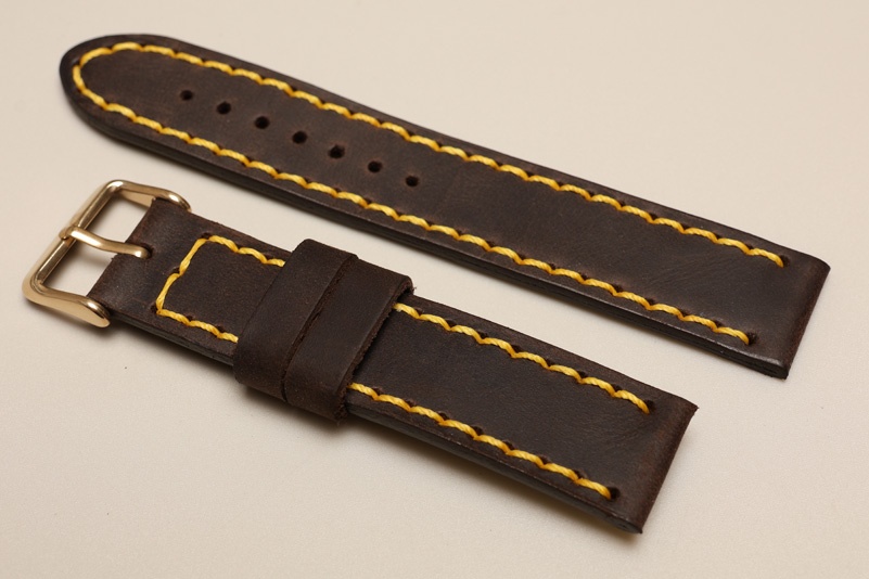 Pasek z jednego kawałka skóry, klejony, gładki. Równoległy fason w stylu vintage, z kolorowymi przeszyciami: na całej długości paska oraz przy klamerce.
