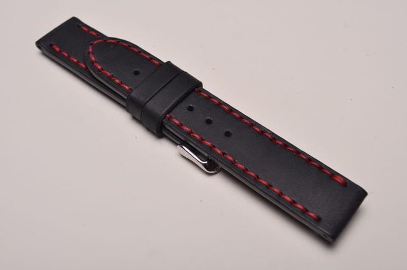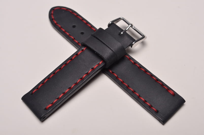 Pasek z jednego kawałka skóry, klejony, gładki. Równoległy fason w stylu vintage, z kolorowymi przeszyciami: na całej długości paska oraz przy klamerce.