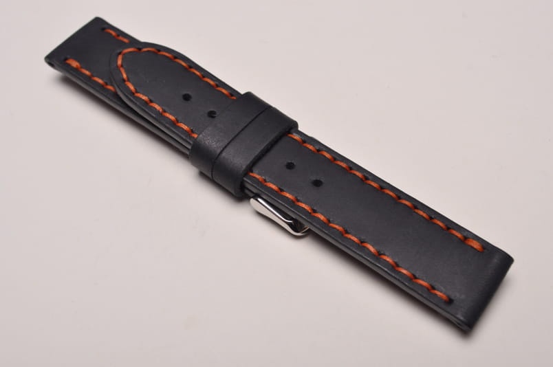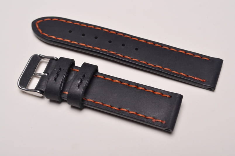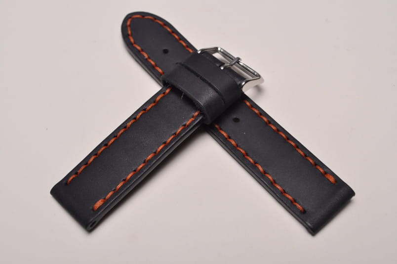 Pasek z jednego kawałka skóry, klejony, gładki. Równoległy fason w stylu vintage, z kolorowymi przeszyciami: na całej długości paska oraz przy klamerce.