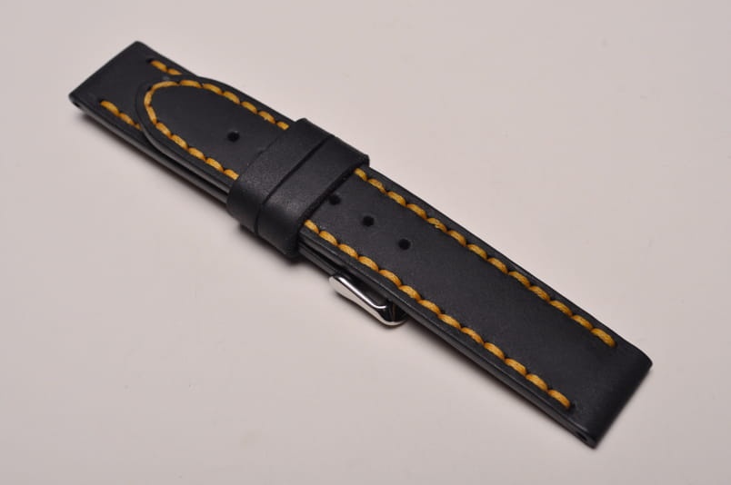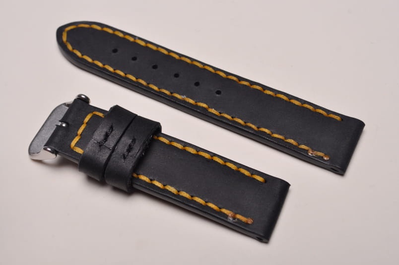 Pasek z jednego kawałka skóry, klejony, gładki. Równoległy fason w stylu vintage, z kolorowymi przeszyciami: na całej długości paska oraz przy klamerce. Miękki, wykończenie matowe. Dwie ruchome szlufki, stalowa klamerka.