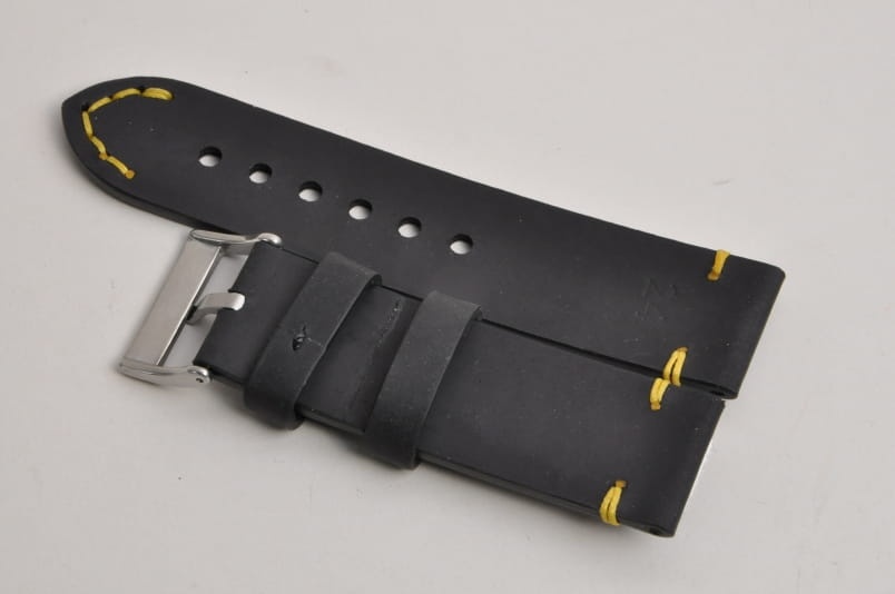 Pasek Skórzany Vintage, Czarny, Żółta nić, 24mm
