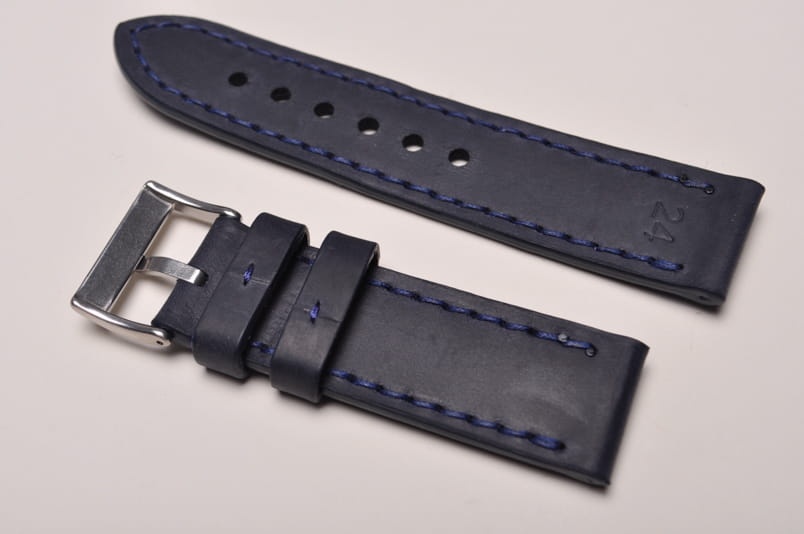 Pasek z jednego kawałka skóry, klejony, gładki. Równoległy fason w stylu vintage, z kolorowymi przeszyciami: na całej długości paska oraz przy klamerce. Miękki, wykończenie matowe. Dwie ruchome szlufki, masywna stalowa klamerka.