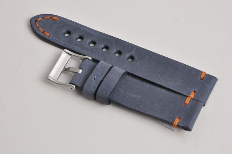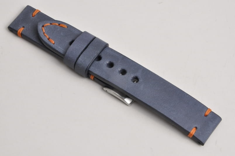 Pasek Skórzany Vintage, Niebieski, Pomarańczowa nić, 20mm