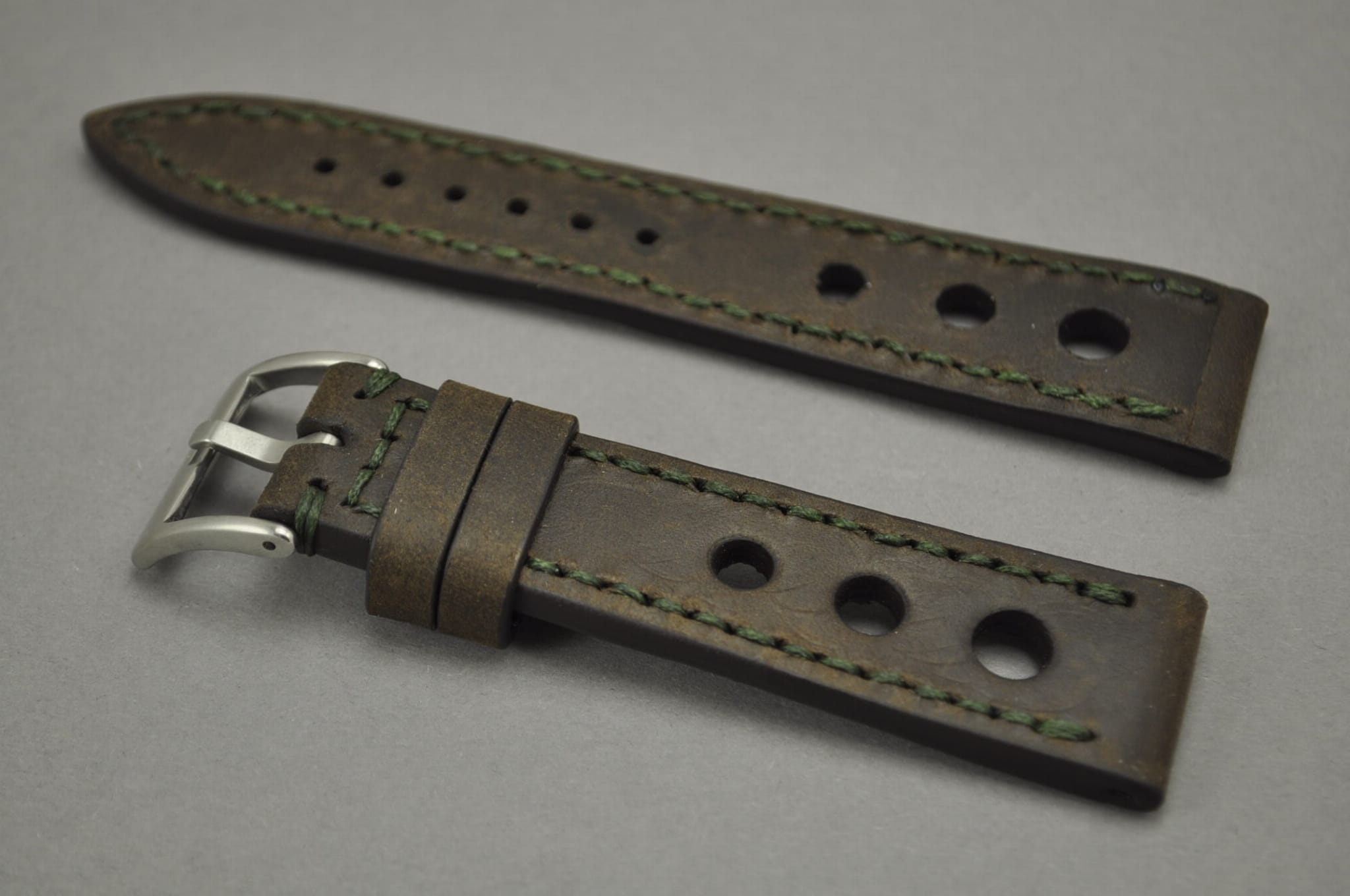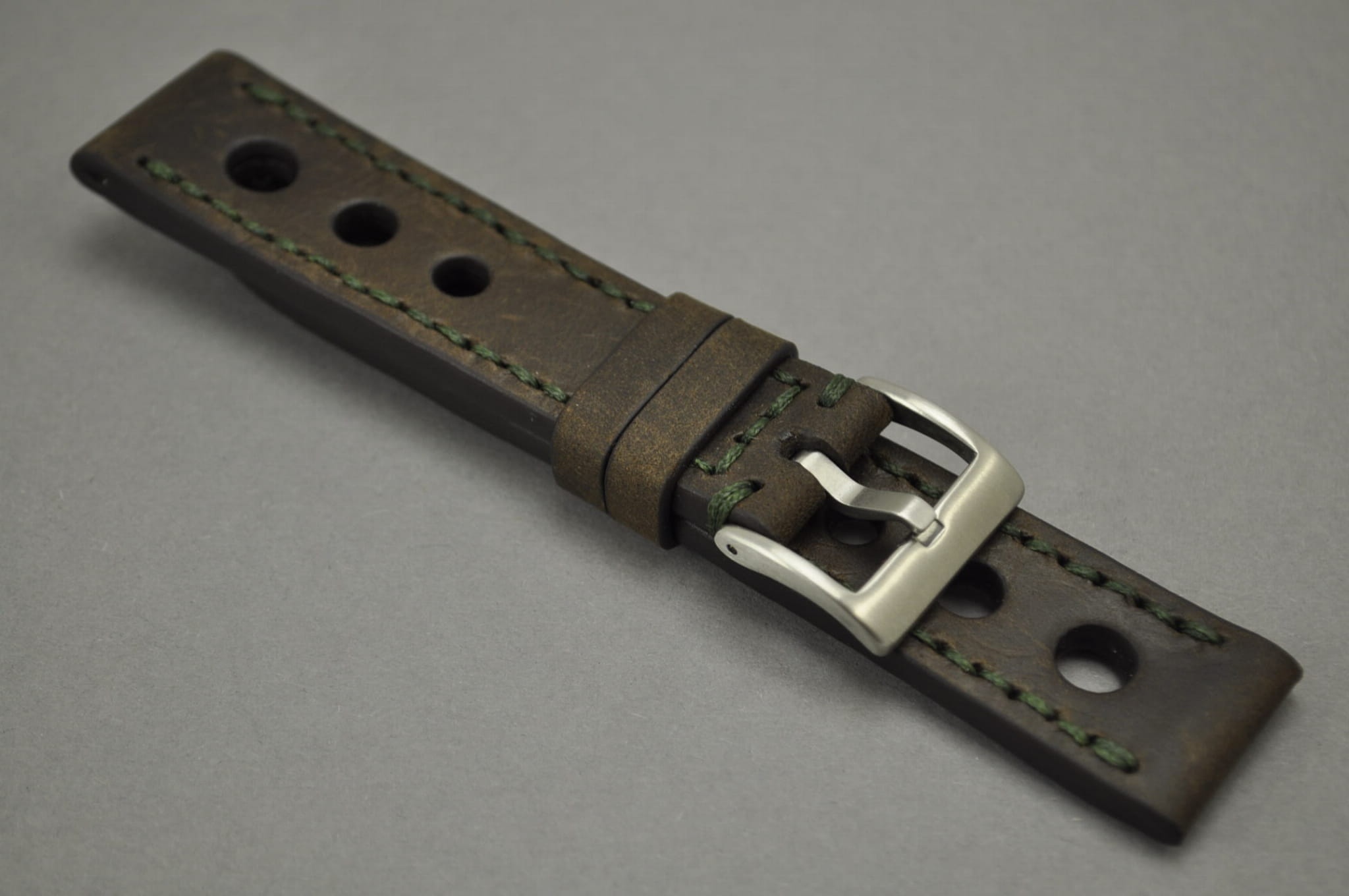Pasek z jednego kawałka skóry, klejony, gładki. Fason Rally, charakterystyczne trzy otwory w pasku, kolorowe przeszycie na całej długości paska oraz przy klamerce. Miękki, wykończenie matowe. Dwie szlufki, stalowa klamerka.