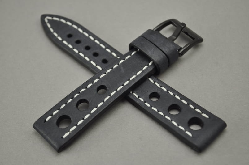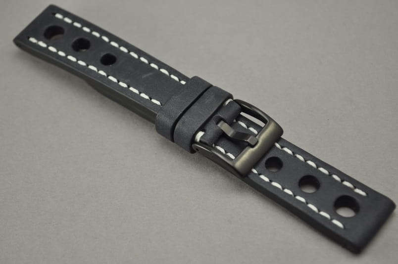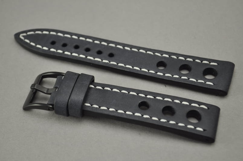 Pasek Skórzany Vintage, Rally, Czarny, Biała nić, 20mm