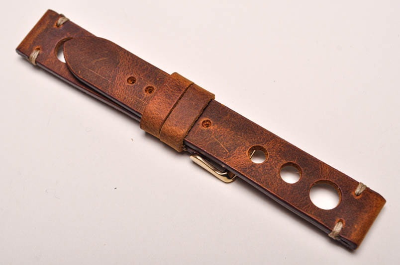 Pasek Skórzany Vintage, Rally 2, Brązowy, Beżowa nić, 20mm