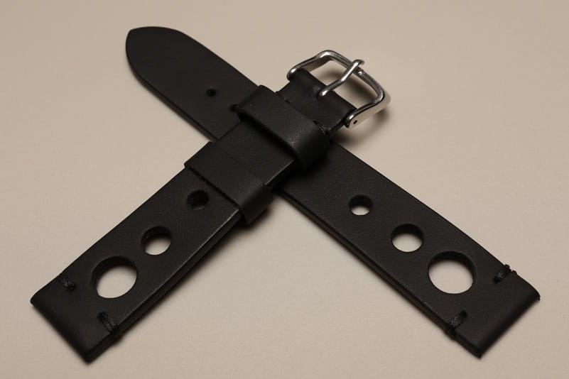 Pasek Skórzany Vintage, Rally 2, Czarny, Czarna nić, 20mm