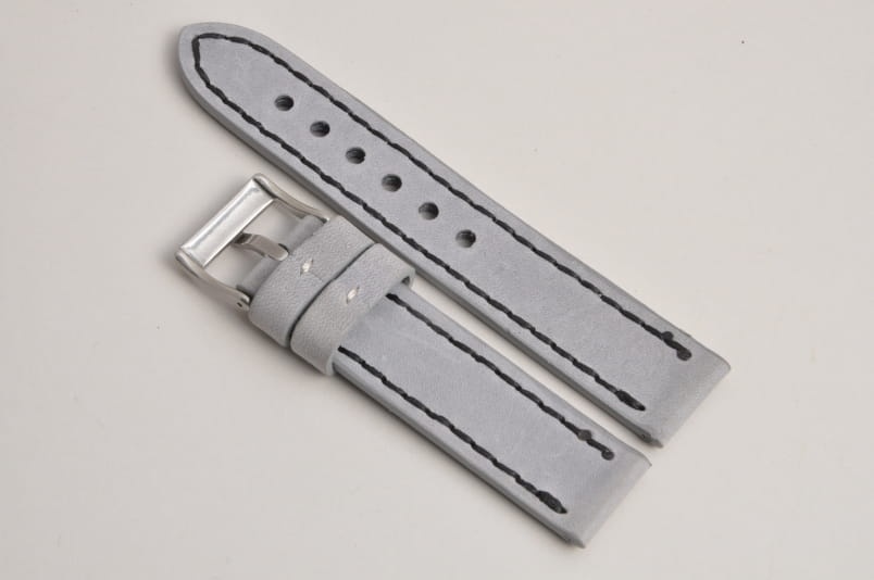 Pasek z jednego kawałka skóry, klejony, gładki. Równoległy fason w stylu vintage, z kolorowymi przeszyciami: na całej długości paska oraz przy klamerce. Miękki, wykończenie matowe.