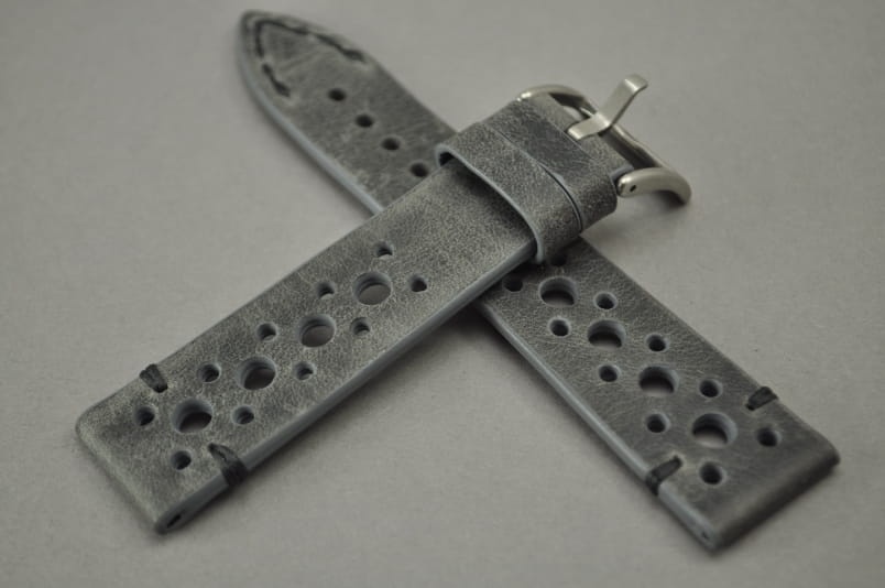Pasek Skórzany Vintage, Szary, Tropic, Szara nić, 22mm