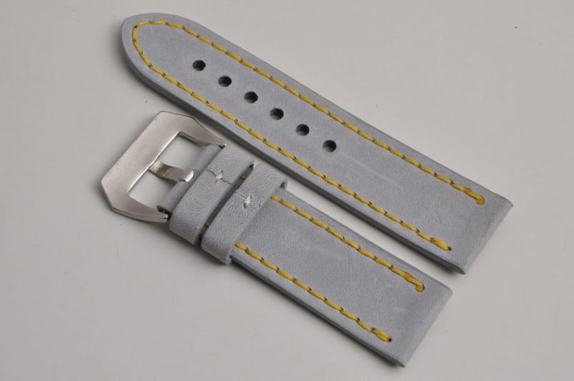 Pasek z jednego kawałka skóry, klejony, gładki. Równoległy fason w stylu vintage, z kolorowymi przeszyciami: na całej długości paska oraz przy klamerce. Miękki, wykończenie matowe. Dwie ruchome szlufki, masywna stalowa klamerka.