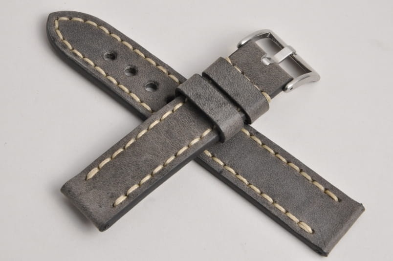 Pasek Skórzany Vintage, Szary ciemny, Beżowa nić, 22mm