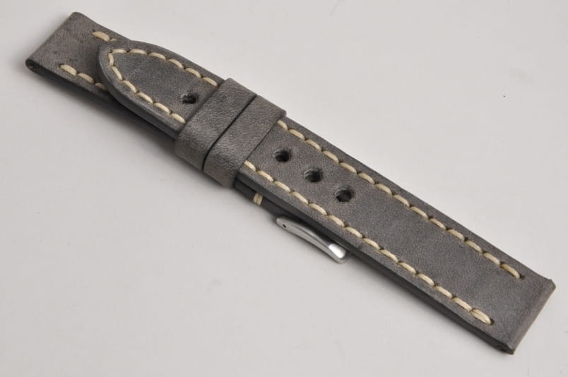 Pasek z jednego kawałka skóry, klejony, gładki. Równoległy fason w stylu vintage, z kolorowymi przeszyciami: na całej długości paska oraz przy klamerce. Miękki, wykończenie matowe. Dwie ruchome szlufki, masywna stalowa klamerka.