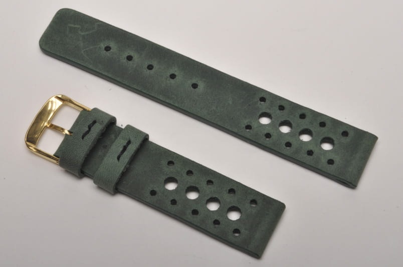 Pasek w stylu vintage z jednego kawałka skóry, klejony, gładki. Miękki, wykończenie matowe. Charakterystyczne dla modelu Tropic otwory w pasku, cztery większe otwory przez środek, po bokach symetrycznie po pięć mniejszych. Fason równoległy, koniec paska równo ścięty. Dwie ruchome szlufki, stalowa klamerka.