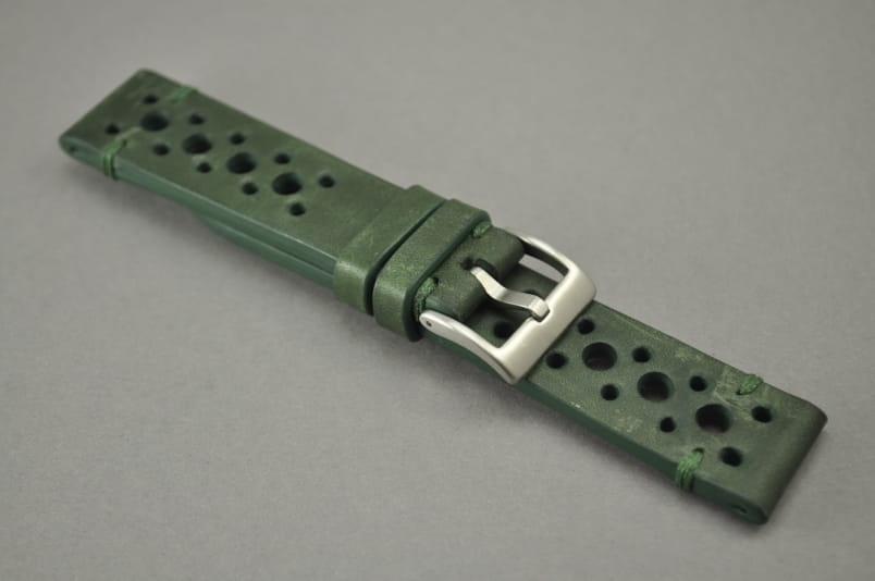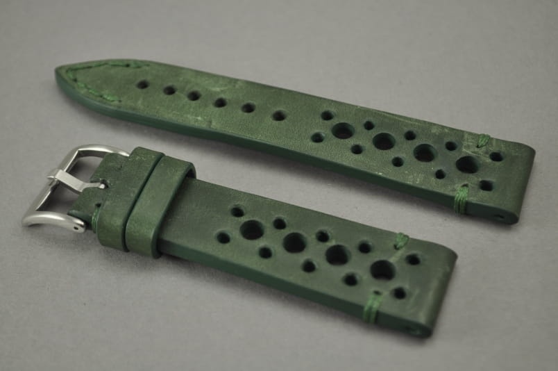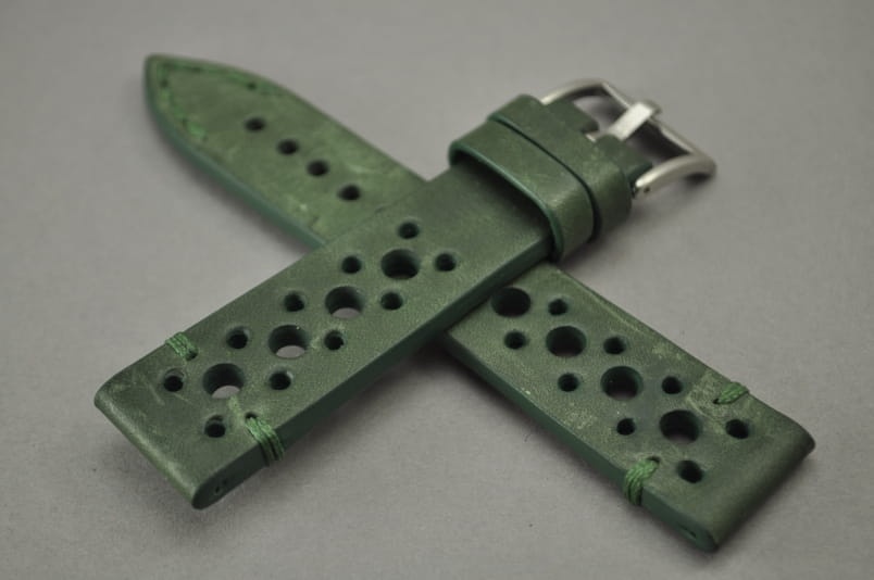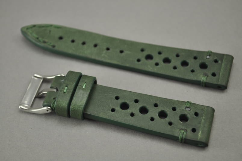 Pasek Skórzany Vintage, Zielony, Tropic, Zielona nić, 22mm