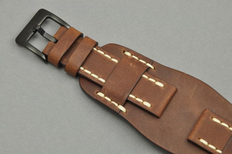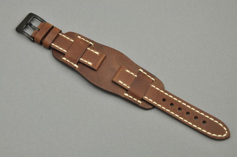 Pasek Skórzany Vintage z podkładką, Brązowy, Biała nić 20mm