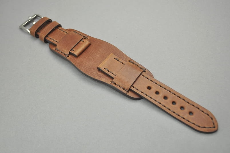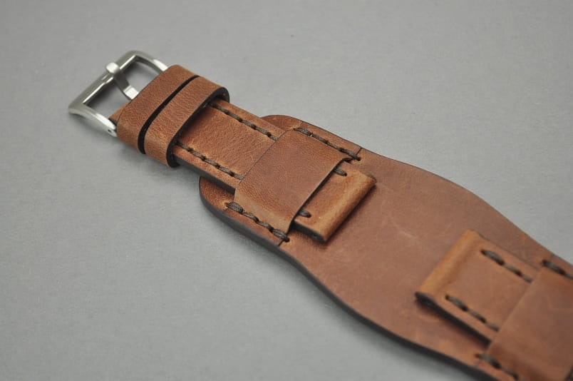 Pasek Skórzany Vintage z podkładką, Brązowy, Brązowa nić 22mm