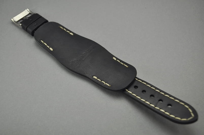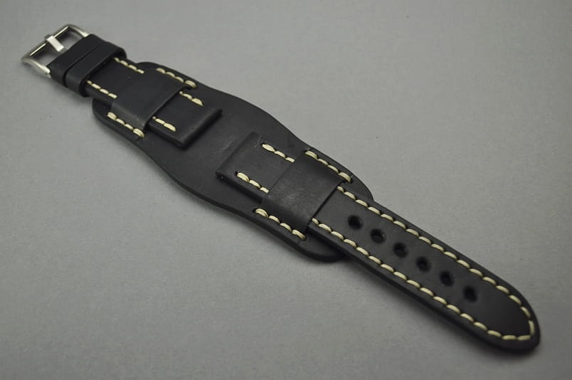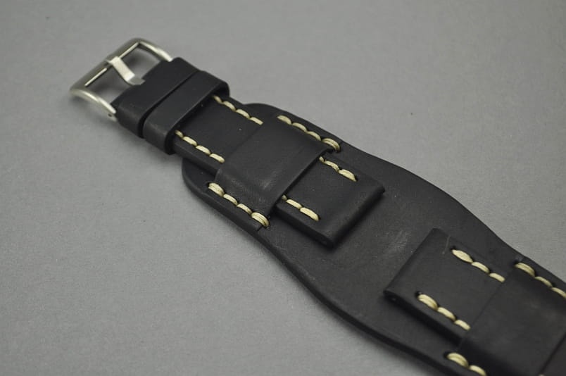 Pasek Skórzany Vintage z podkładką, Czarny, Beżowa nić, 22mm