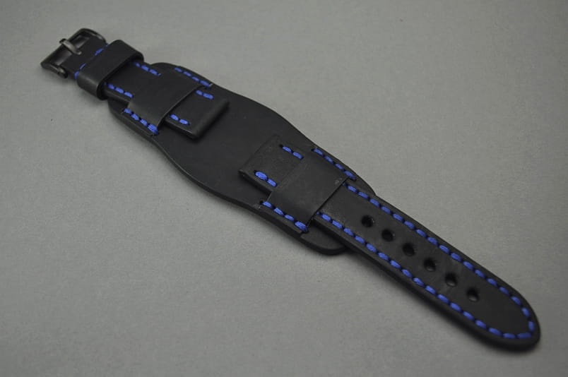 Trzyczęściowy pasek z podkładką, skórzany, klejony, gładki. Równoległy fason w stylu vintage, z kolorowymi przeszyciami na całej długości paska i przy klamerce .Tym samym kolorem przeszyte uchwyty paska w podkładce. Miękki, wykończenie matowe. Dwie ruchome szlufki, stalowa klamerka.
