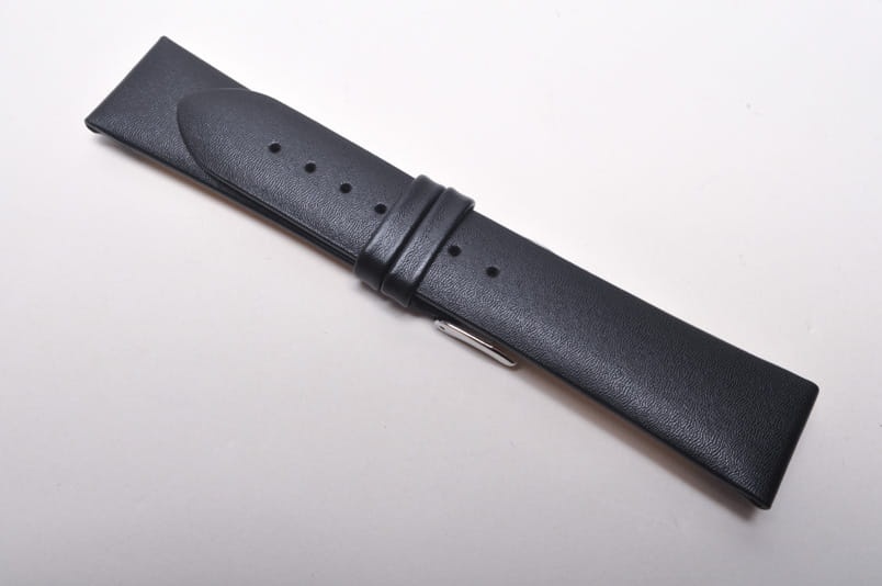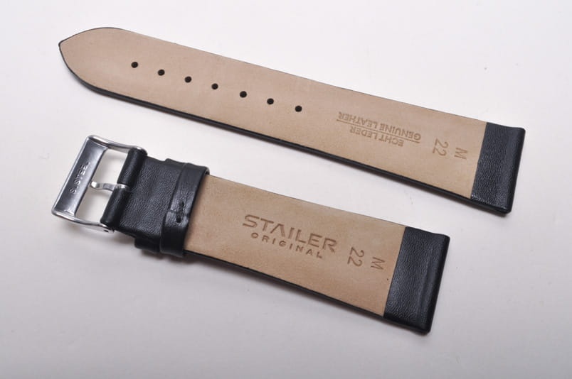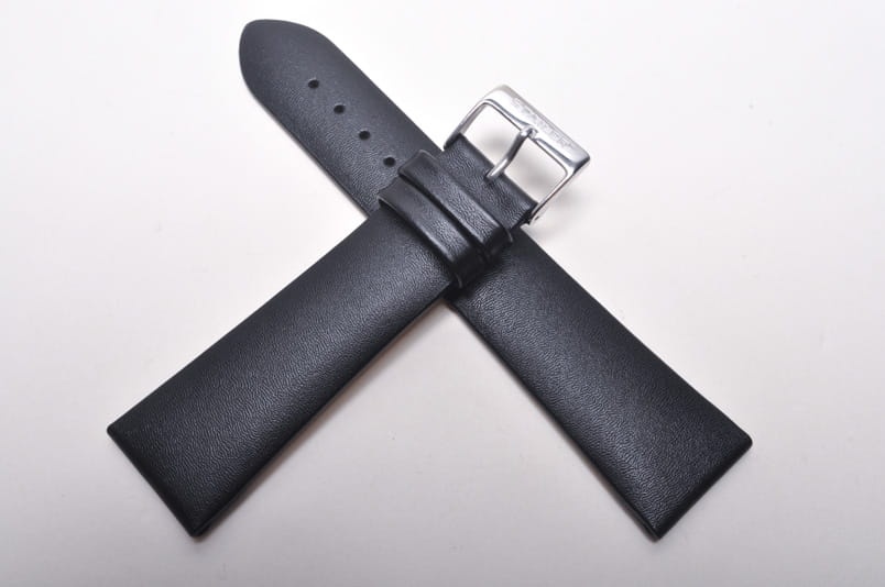 Pasuje do zegarków z mocowaniem 22mm. Wykonany z naturalnej skóry. Klejony, gładki, dość miękki pasek. Grubość od strony zegarka 3,5mm, dalej 2,80mm. Stalowa klamerka, podwójna szlufka.