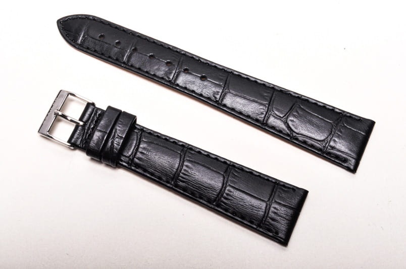 Wykonany ze skóry cielęcej, imitacja skóry aligatora. Miękki, matowy, przeszyty nicią pod kolor. Grubość przy mocowaniu 3,5mm, na końcu 2,5mm. Dwie szlufki, stalowa klamerka. Wersja XL.