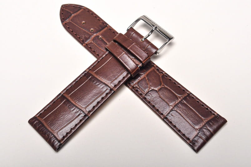 Wykonany ze skóry cielęcej, imitacja skóry aligatora. Miękki, z połyskiem, przeszyty nicią pod kolor. Grubość przy mocowaniu 3,2mm, na końcu 2,5mm.