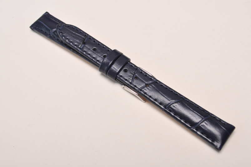 Wykonany ze skóry cielęcej, imitacja skóry aligatora. Miękki, matowy, przeszyty nicią pod kolor. Grubość przy mocowaniu 4,0mm, na końcu 2,2mm. Dwie szlufki, stalowa klamerka.