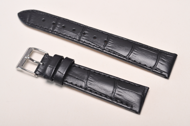 Wykonany ze skóry cielęcej, imitacja skóry aligatora. Miękki, matowy, przeszyty nicią pod kolor. Grubość przy mocowaniu 4,0mm, na końcu 2,5mm. Dwie szlufki, stalowa klamerka. Krótsza wersja XS.