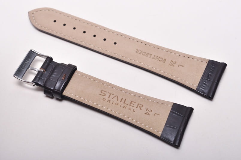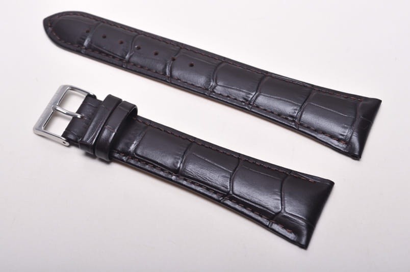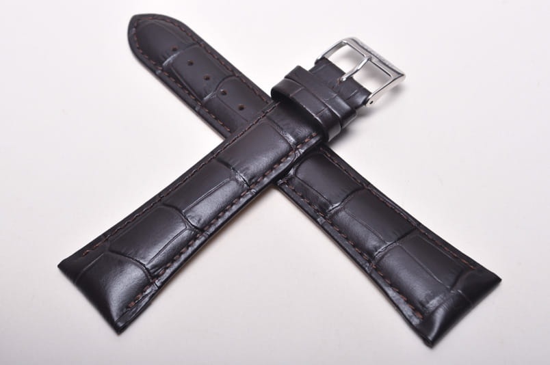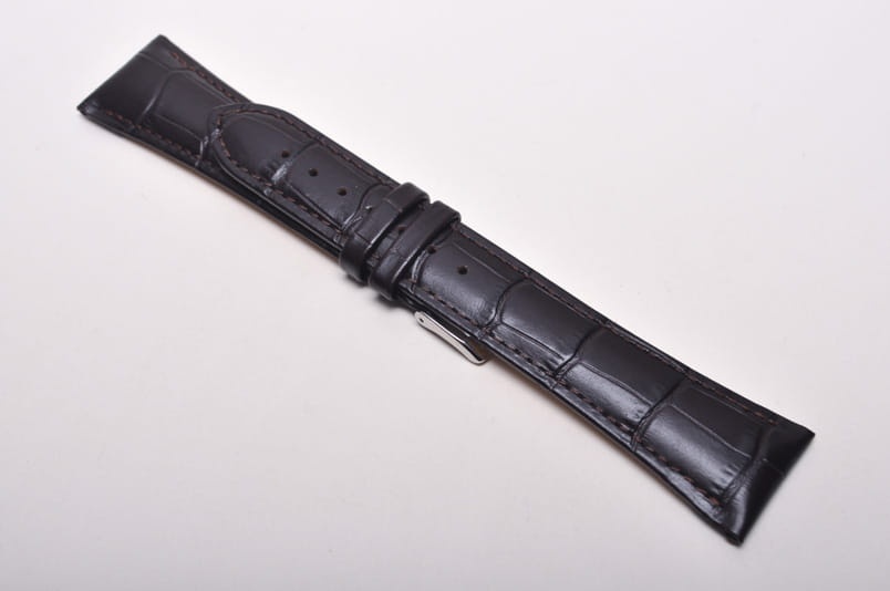 Wykonany ze skóry cielęcej, imitacja skóry aligatora. Miękki, matowy, przeszyty nicią pod kolor. Grubość przy mocowaniu 4,5mm, na końcu 3,2mm. Dwie szlufki, stalowa klamerka. Równoległy fason. Wersja XL