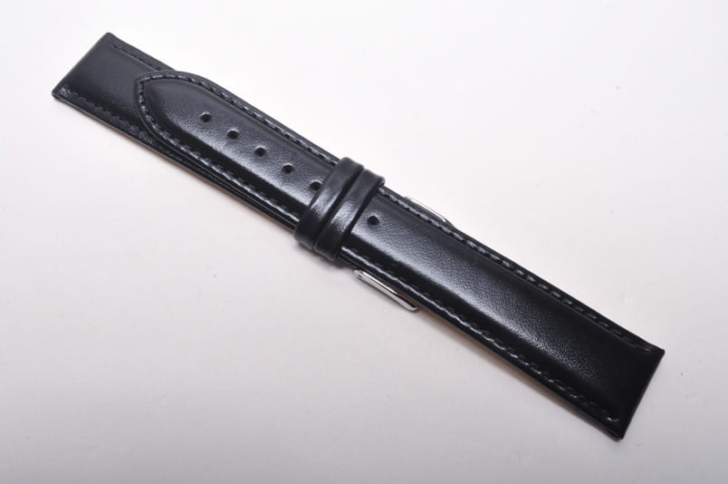 Wykonany ze skóry cielęcej, gładki z delikatnym połyskiem. Elegancki miękki pasek przeszyty nicią pod kolor. Grubość przy mocowaniu 4,00mm, na końcu 3,2mm. Dwie szlufki, stalowa klamerka.Wersja XL.