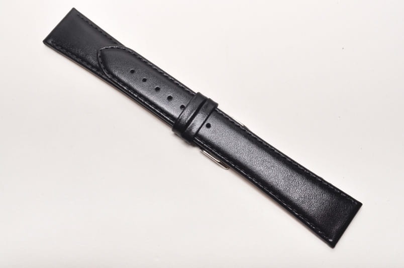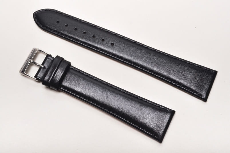 Wykonany ze skóry cielęcej, gładki z delikatnym połyskiem. Elegancki miękki pasek przeszyty nicią pod kolor. Grubość przy mocowaniu 4,00mm, na końcu 3,2mm. Dwie szlufki, stalowa klamerka.Wersja XXL.