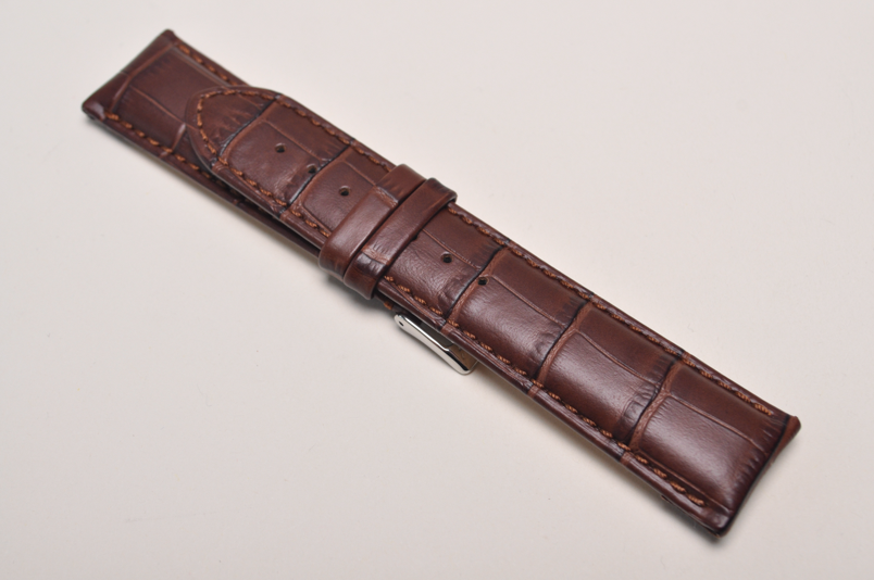 Wykonany ze skóry cielęcej, imitacja skóry aligatora. Wykończenie w półpołysku, przeszyty nicią pod kolor. Lekko pogrubiany. Dwie szlufki, stalowa klamerka.