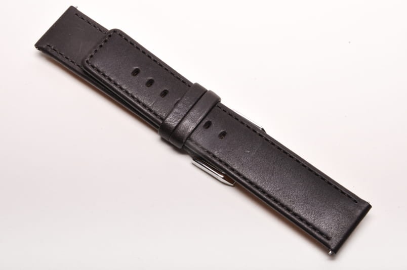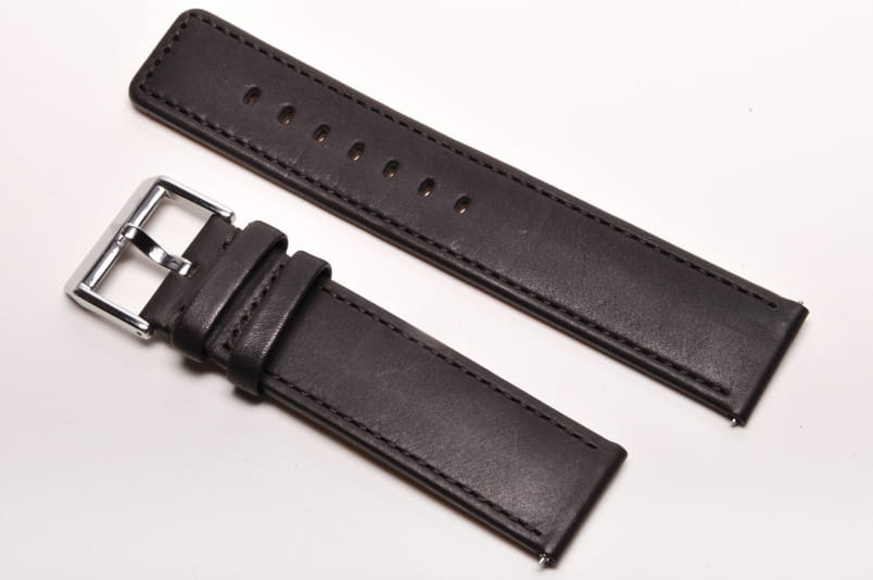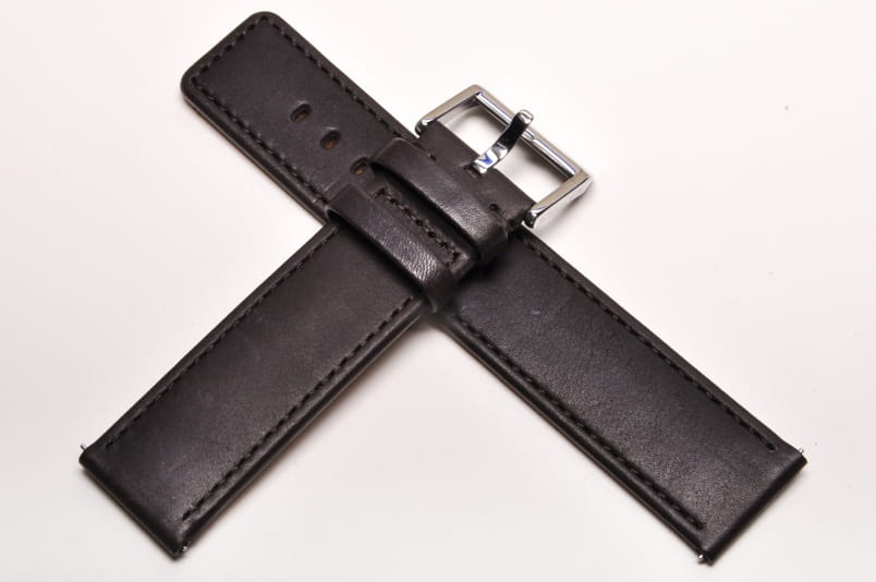 Wykonany ze skóry cielęcej w wyprawie roślinnej z garbarni Haas. Licowa, gładka futrówka. Przeszyty nicią pod kolor paska. Równoległy fason, lekko pogrubiany na płasko. Dwie szlufki, stalowa klamerka.