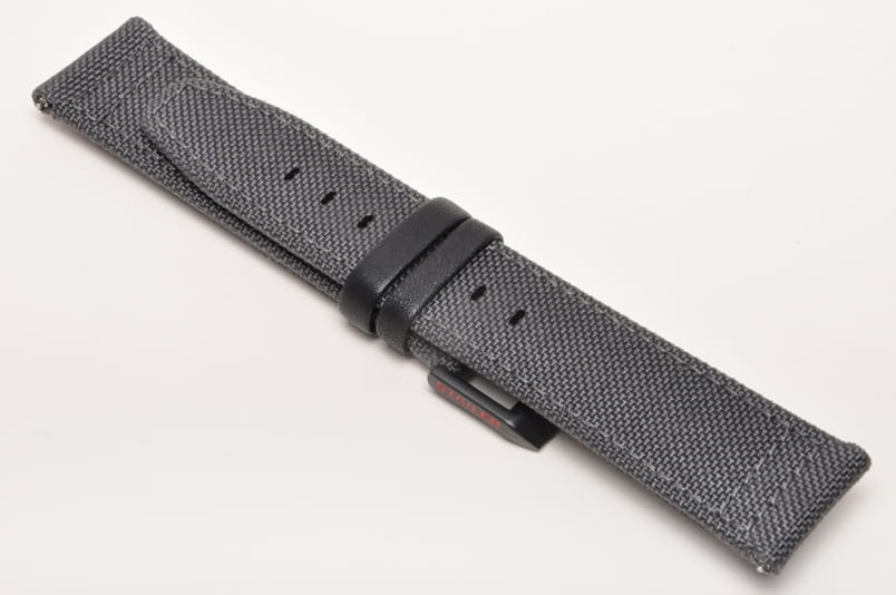 Wykonany z materiału Cordura, futrówka z czarnej, licowej skóry. Przeszyty nicią w kolorze paska. Dwie szlufki, stalowa klamerka. Wbudowane szybkie teleskopy.