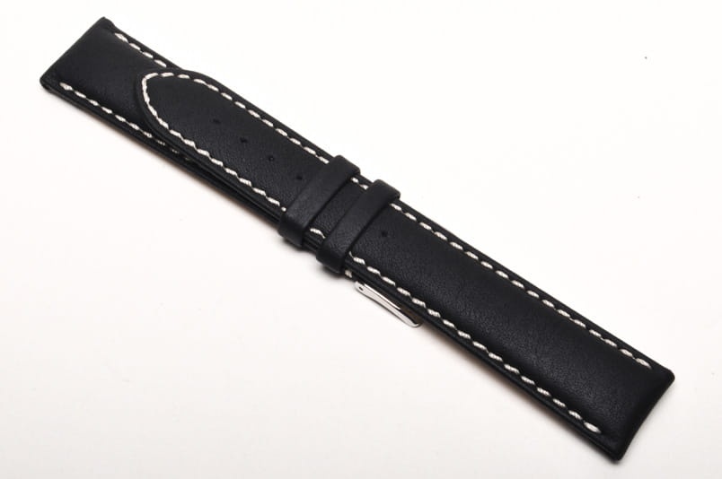 Wykonany ze skóry cielęcej, z delikatną fakturą. Matowy, przeszyty białą nicią. Pogrubiany przy mocowaniu, dalej cieniowany. Dwie szlufki, stalowa klamerka. Wersja XL.